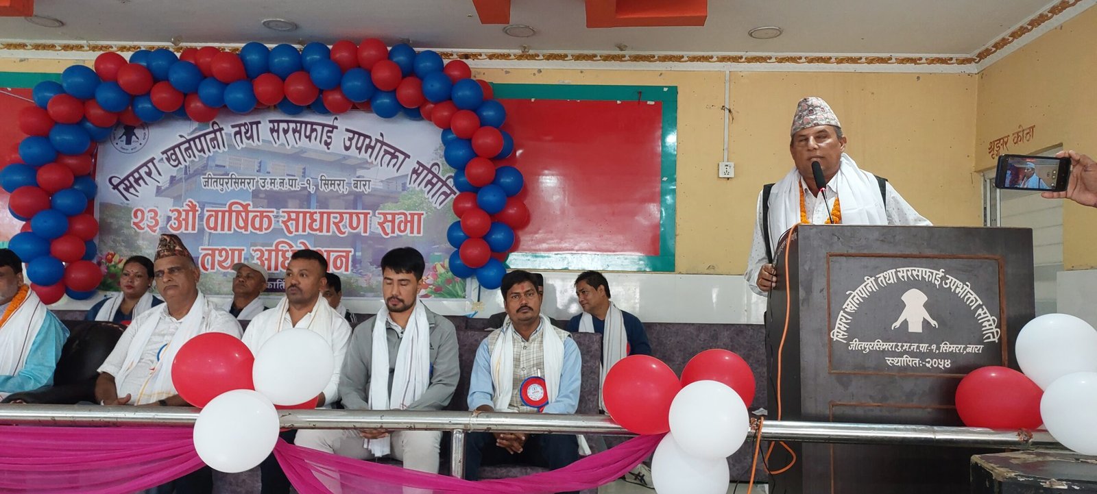 सिमरा खानेपानी तथा सरसफाई उपभोक्ता समितीका अध्यक्ष काशिम हुसैनको अध्यक्षतामा भएको कार्यक्रममा बारा क्षेत्र नं.४(क) बाट निर्वाचित प्रदेश सभा सदस्य देवनारायण चौधरी ,जीतपुरसिमरा उपमहानगरपालिकाको उप प्रमुख भोला प्रसाद अधिकारी ,नेपाली काग्रेसका नगर कमिटी अध्यक्ष छबिलाल शर्मा ,नेकपा एमालेका नगरकमिटी अध्यक्ष त्रिलोक बिक्रम शाह ,नेकपा माओवादी केन्द्रका नगर कमिटी अध्यक्ष प्रेम बराल ,रास्वपाको नगर कमिटी अध्यक्ष सुरेन्द्र के.सि. ,लोसपाका नेता राजुराज गिरी लगायतको सहभागिता रहेको थियो ।