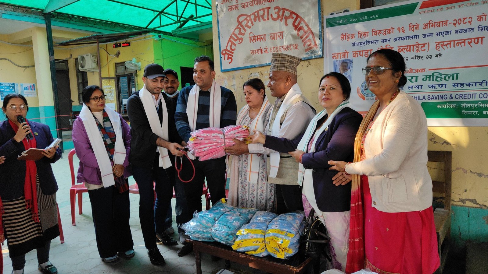लैङ्गिक हिंसा विरुद्धको १६ दिने अभियानको अवसर पारेर जीतपुरसिमरा नगर अस्पतालमा जन्मिएका नवजात शिशुहरूका लागि न्यानो कपडा (बेबी ब्ल्याङ्केट) वितरण गरिएको छ। सिमरा महिला बचत तथा ऋण सहकारी संस्थाको आयोजनामा गरिएको उक्त कार्यक्रममा १ सय थान बेबी ब्ल्याङ्केट हस्तान्तरण गरिएको हो।